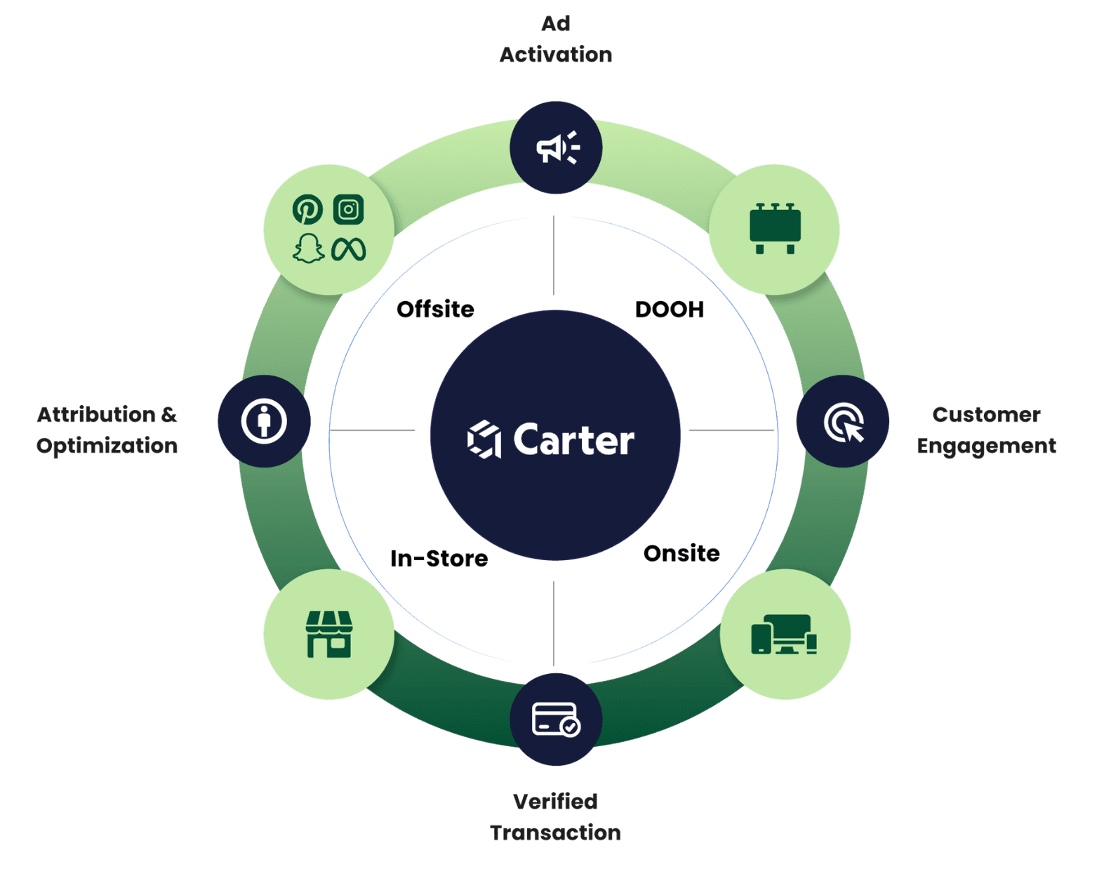 Carter unifies onsite, offsite, social, and in-store into one platform with one forecast, one dashboard, and one optimization engine. AI agents optimize in real time, shifting spend as demand, inventory, and shopper behavior change.